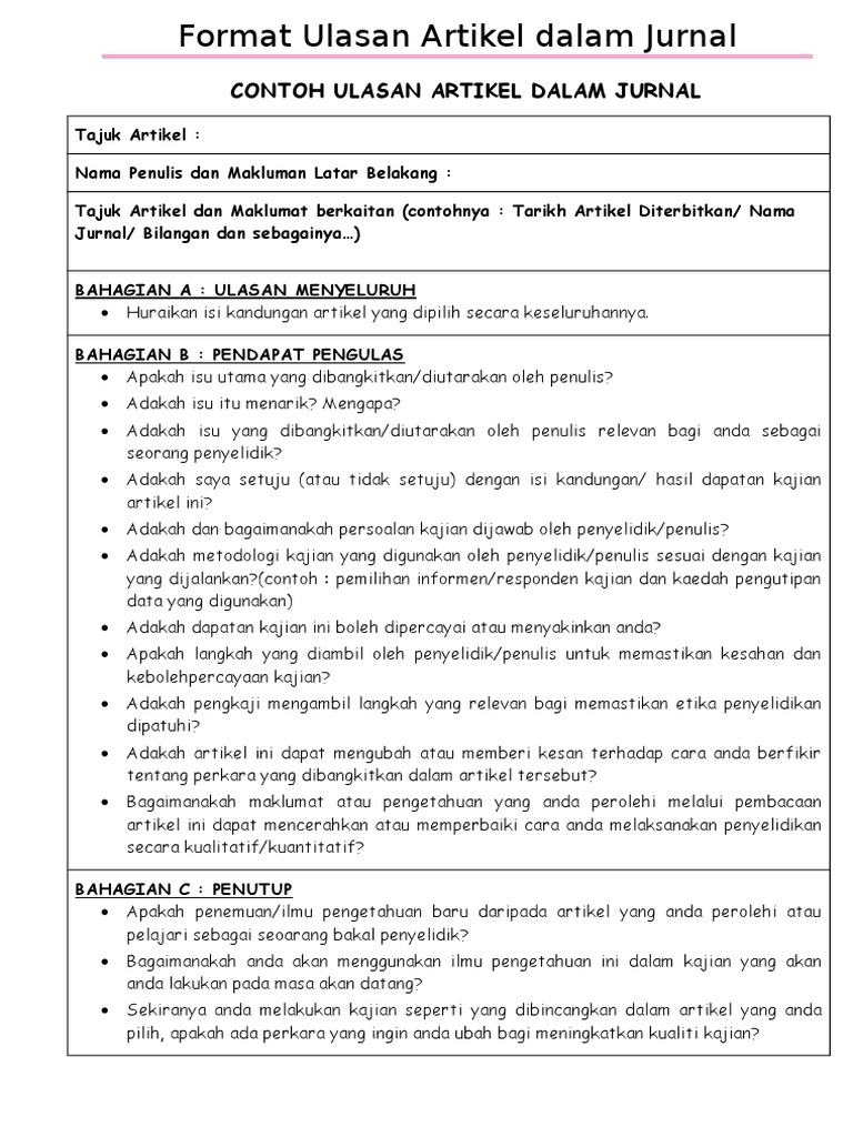 Format Ulasan Artikel Dalam Jurnal Pdf